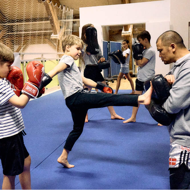 Holdet er for både piger og drenge i alderen 7-12 år, og alle niveauer træner sammen. Træningen vil have fokus på de basale teknikker indenfor thaiboksning, samt motorisk udvikling og samarbejde. Thaiboksning er en kontaktsport, men på vores børnehold er der ikke kontakt til hovedet. Krav til udstyr: Boksehandsker, benskinner og sjippetov. Til prøvetimen vil en af vores undervisere tage godt imod dig, når du kommer. og det være muligt at låne udstyr.