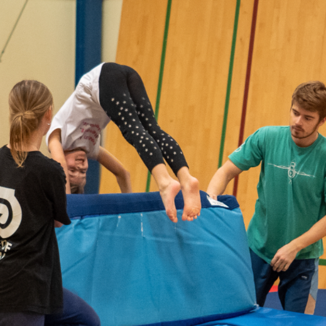 Holdet er for dig, der har lyst til at lege, danse og springe – og bruge en masse energi og have det sjovt sammen med dine kammerater. Første del af træningen består af lege, koordination og samarbejde. Aktiviteterne vil være funktionelle og relevante med henblik på gymnastiske færdigheder. Vi skal bevæge os til musik og vi skal arbejde lidt med koreografi, hvor vi også viser lidt heraf til opvisning. Grundlæggende skal det være sjovt, socialt og der skal være smil på læben. Anden del af træningen foregår på redskaber. Vi skal arbejde med grundspring indenfor springgymnastik som fx vejrmøller, flikflak og saltoer. Vi bruger redskaber som airtrack, trampoliner, bløde måtter og springgrav. Vi skal ligeledes have det sjovt, og der skal være fart på. Kom og gi den gas - vi glæder os til at lege med dig.