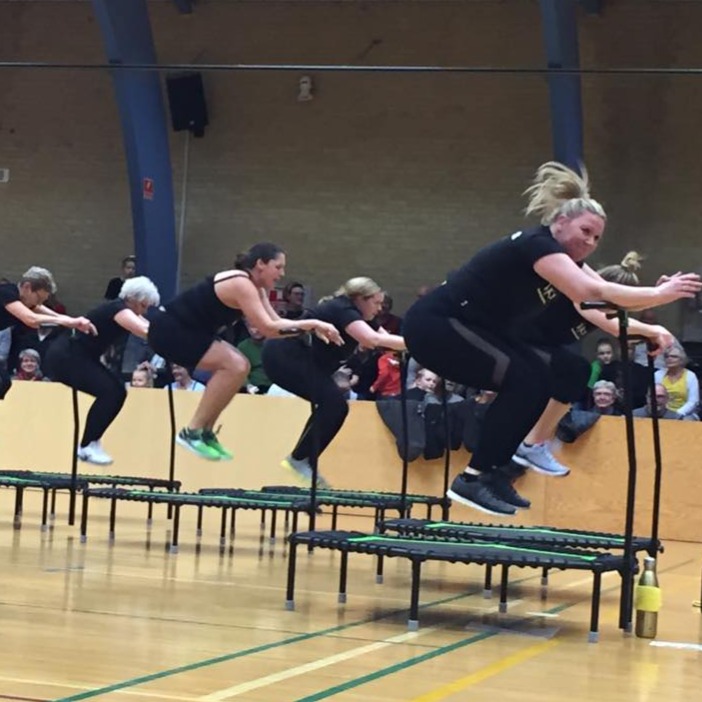 I Jumping fitness får vi får høj puls på de specieldesignet trampoliner og helt sikkert et smil på læben.