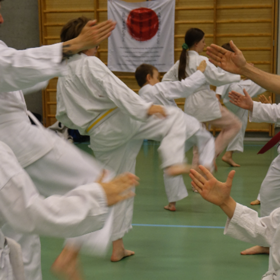 I træningssalen (dojo) eller lige udenfor ved indgang til dojo